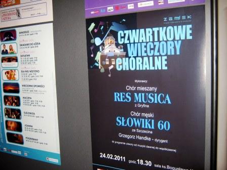 24 lutego 2011 w sali ks.Bogusława X - Zamku Książąt Pomorskich Szczecinie odbył się koncert z cyklu "Czwartkowe Wieczory Chóralne".