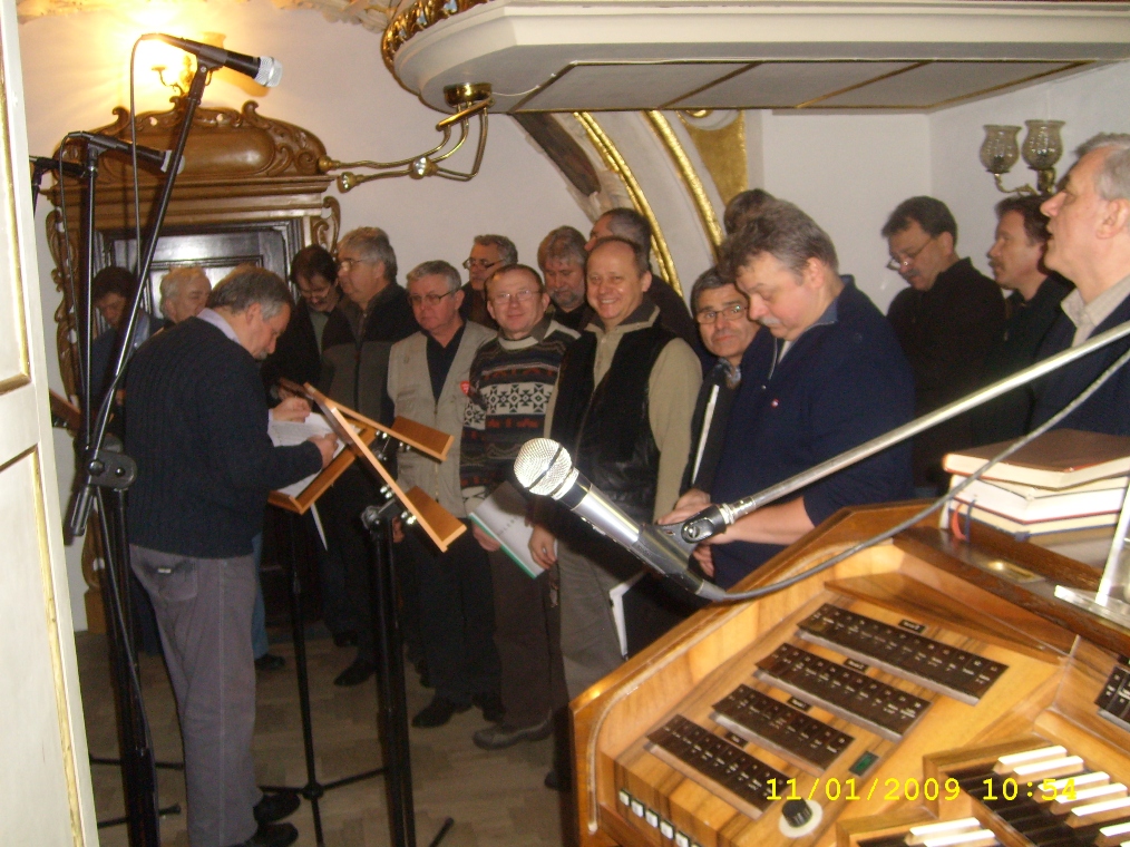 Za chwilę rozpoczęcie Mszy Świętej. Opuszczamy kaplicę by przyległymi schodami, udać się na górę. Na piętrze, małymi drzwiami wchodzimy na chór, gdzie posadowiony jest szlachetny instrument. Dziś organy, pozwolą również naszym głosom wyrazić śpiewem kolęd, modlitwę. Czekamy w napięciu by na znak dyrygenta, rozpocząć kolędą „Wśród nocnej ciszy”. Później „Tryumfy Króla Niebieskiego”, „Anioł pasterzom mówił”. Męskie głosy wypełniły kaplicę pod sklepienie, niosąc dostojność i zarazem radość. Następnie czas na wysłuchanie w skupieniu nauki, a potem intencje. Głos kapłana, zachęcał do modlitwy i powierzenia własnych intencji „Opatrzności Boskiej” i Matce Bożej. Jak wielkie znaczenie miały słowa kapłana w tej ważnej dla nas chwili?. Wśród chórzystów dwóch kolegów przyznało się, że właśnie dziś, byli w tym Miejscu, w Duchowej Stolicy Polski po raz pierwszy w życiu. Każdy z nas jak i osoby uczestniczące w Mszy Świętej, zabrał cząstkę Sakralnej Wielkiej Mocy ze sobą.