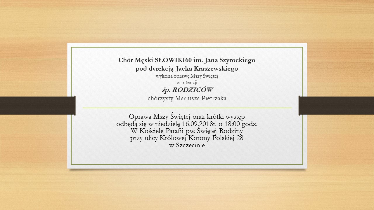 Zapowiedź występu na Mszy Św. w intencji śp. Rodziców Kolegi