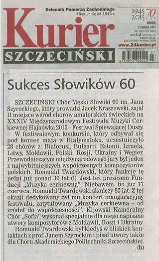 Kurier Szczeciński o sukcesie chóru na festiwalu Hajnówka 2015